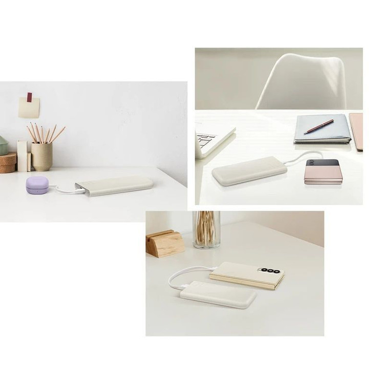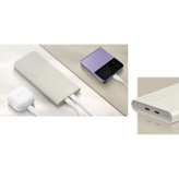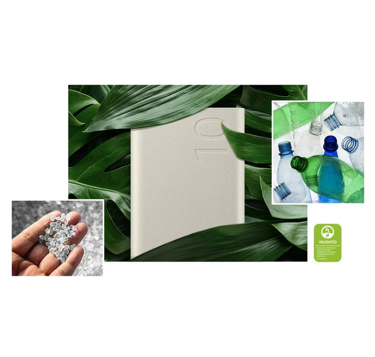 سامسونگ در طراحی EB-P3400 از پلاستیک مقاوم ABS استفاده کرده که علاوه بر استحکام بالا، وزن کلی دستگاه را به میزان قابلتوجهی کاهش داده است. سطح مات بدنه از لغزش جلوگیری کرده و مقاومت خوبی در برابر خط و خش دارد. همچنین لبههای منحنی باعث میشود پاوربانک بهراحتی در دست قرار گیرد و در کیف یا جیب فضای زیادی اشغال نکند. نکته قابلتوجه در این مدل، استفاده از مواد بازیافتی در ساخت آن است؛ اقدامی که نشاندهندهی تعهد سامسونگ به کاهش اثرات زیستمحیطی محصولاتش است. این پاوربانک با ابعاد ۱۴.۸ در ۷.۰ در ۱.۵۶ سانتیمتر و وزن تنها ۲۱۰ گرم، یکی از سبکترین گزینهها در ظرفیت خود محسوب میشود و برای حمل روزانه، سفر یا استفادهی کاری کاملاً مناسب است.