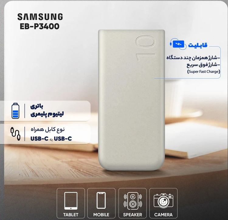 پاوربانک سامسونگ مدل EB-P3400 یکی از محصولات خوشساخت و مدرن برند معتبر سامسونگ است که با ترکیب طراحی مینیمال، فناوری شارژ فوق سریع و وزن سبک، به یکی از گزینههای برتر در میان پاوربانکهای ۱۰ هزار میلیآمپرساعتی تبدیل شده است. این مدل بهویژه برای کاربرانی طراحی شده که سرعت، کیفیت و قابلیت اطمینان را در اولویت قرار میدهند و در عین حال، به زیبایی و سازگاری زیستمحیطی نیز اهمیت میدهند.