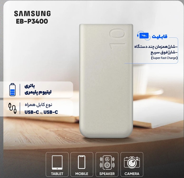 پاوربانک 25 وات سامسونگ مدل EB-P3400 ظرفیت 10000 میلی آمپر ساعت