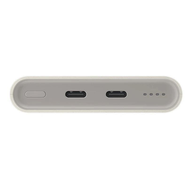 سامسونگ در طراحی EB-P3400 از پلاستیک مقاوم ABS استفاده کرده که علاوه بر استحکام بالا، وزن کلی دستگاه را به میزان قابلتوجهی کاهش داده است. سطح مات بدنه از لغزش جلوگیری کرده و مقاومت خوبی در برابر خط و خش دارد. همچنین لبههای منحنی باعث میشود پاوربانک بهراحتی در دست قرار گیرد و در کیف یا جیب فضای زیادی اشغال نکند. نکته قابلتوجه در این مدل، استفاده از مواد بازیافتی در ساخت آن است؛ اقدامی که نشاندهندهی تعهد سامسونگ به کاهش اثرات زیستمحیطی محصولاتش است. این پاوربانک با ابعاد ۱۴.۸ در ۷.۰ در ۱.۵۶ سانتیمتر و وزن تنها ۲۱۰ گرم، یکی از سبکترین گزینهها در ظرفیت خود محسوب میشود و برای حمل روزانه، سفر یا استفادهی کاری کاملاً مناسب است.